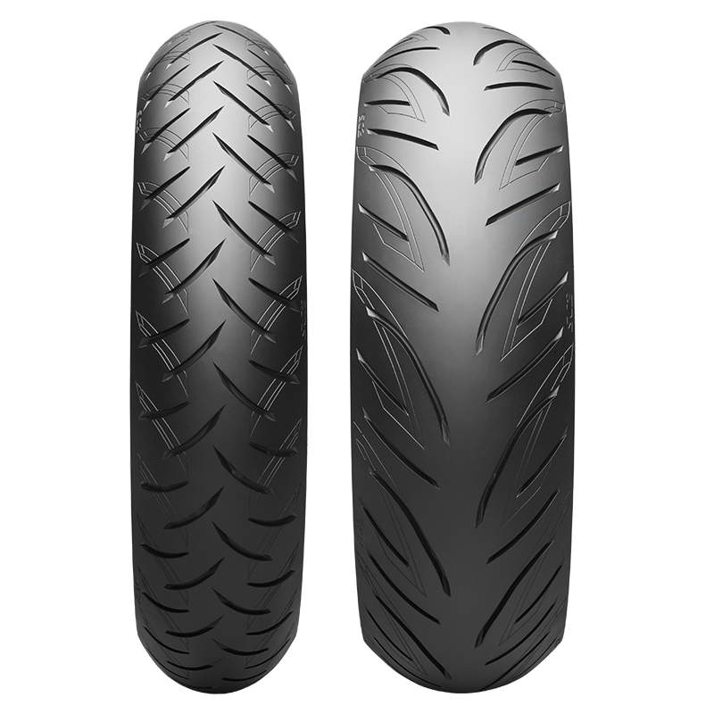 前輪採用含抓地力提升劑的膠料配方,乾地抓地性能再進化,同時確保與前代產品(BATTLAX SC)相同或更長的耐磨壽命。
