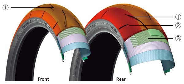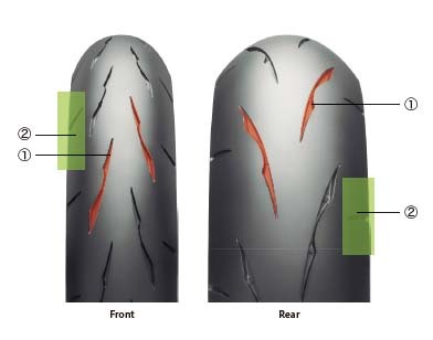 延長胎面肩部的凹槽,改善胎面部分剛性的平衡,傾斜車身時透過廣大接地面來改善抓地力